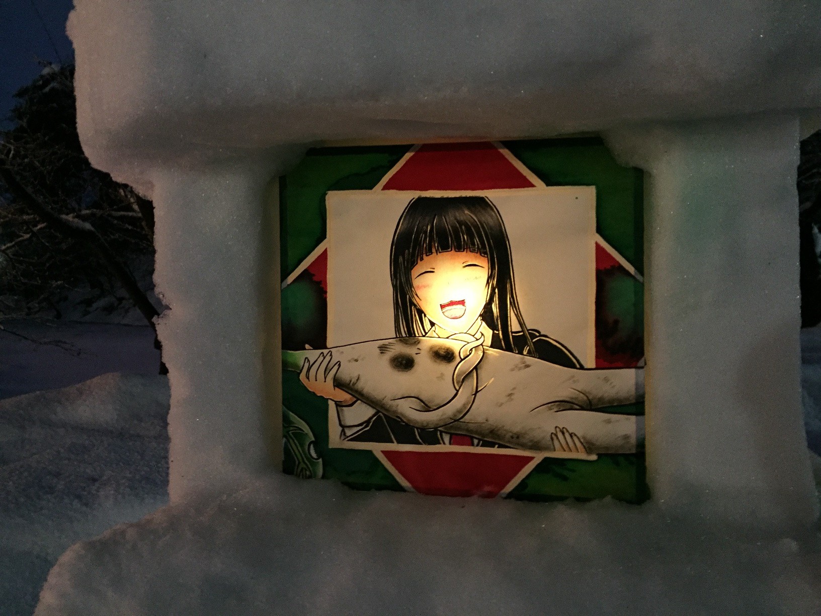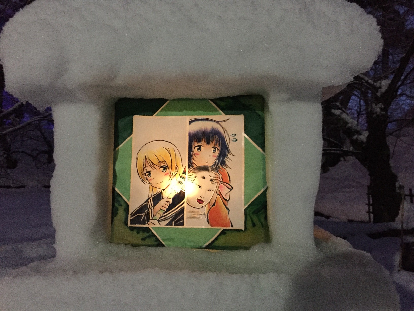 Hunderte von Laternen, beleuchtete Iglus,und Schneeskulpturen erstrahlen nach dem einbrechen der Nacht in einem wunderschön romantischen Licht. Am Beginn des Parks sind jede Menge Essenstände, die an ein kleines Matsuri erinnern. Das Laternenfest ist jedes Jahr Anfang Februar. Ein genaues Datum gibt es nicht. Genauere Informationen findet ihr hier KLICK.