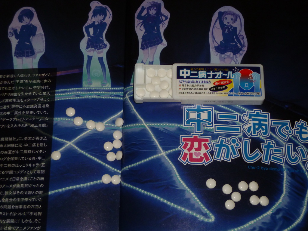 Ich staunte nicht schlecht als Yoko und Norbert von Yorokonde.de mir von ihrer letzten Japanreise Medizin gegen das Chuunibyou Syndrom mitgebracht haben (^∀^)! Einer unsere Kyoto Animation Lieblings Animes scheint doch größere Wellen geschlagen zu haben als angenommen wenn es inzwischen Tabletten für diese Krankheit gibt (⊙ω⊙).